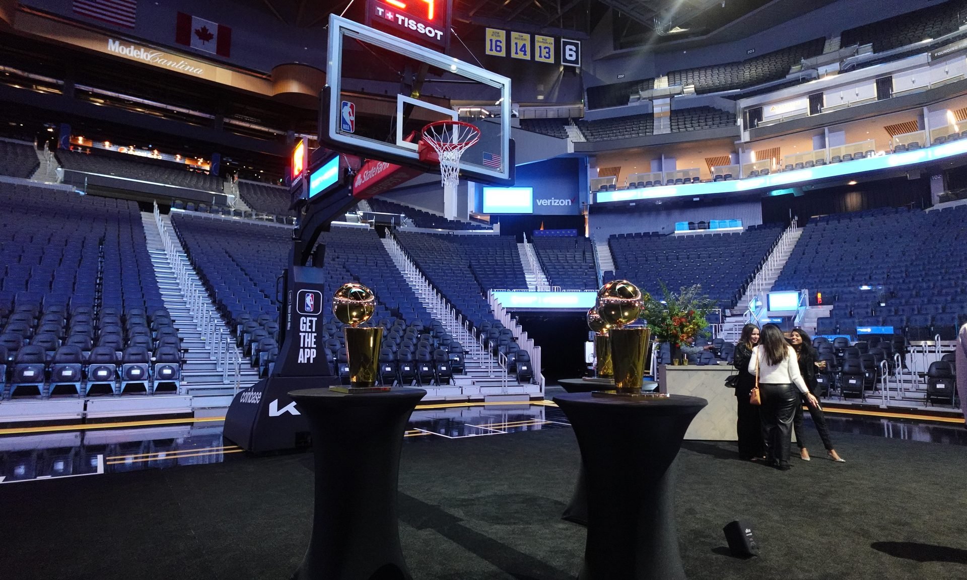 For the Dinner on the Court series, cardmembers got the unique opportunity to walk onto the court and see the Golden State Warriors' championship trophies up close. (Photo by Sally French)