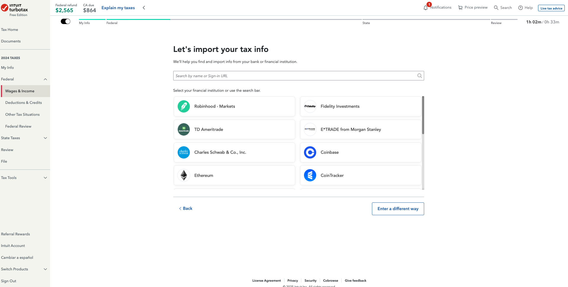 If you’re a new user, you’ll be asked to confirm a series of tax situations — such as whether you have donated to charity, received unemployment income, or sold crypto or stocks during the last tax year — to determine which of TurboTax’s packages will best suit your specific situation. Note our critique above, however. We suggest you instead visit each product’s homepage to learn more about each package type to better inform your selections.