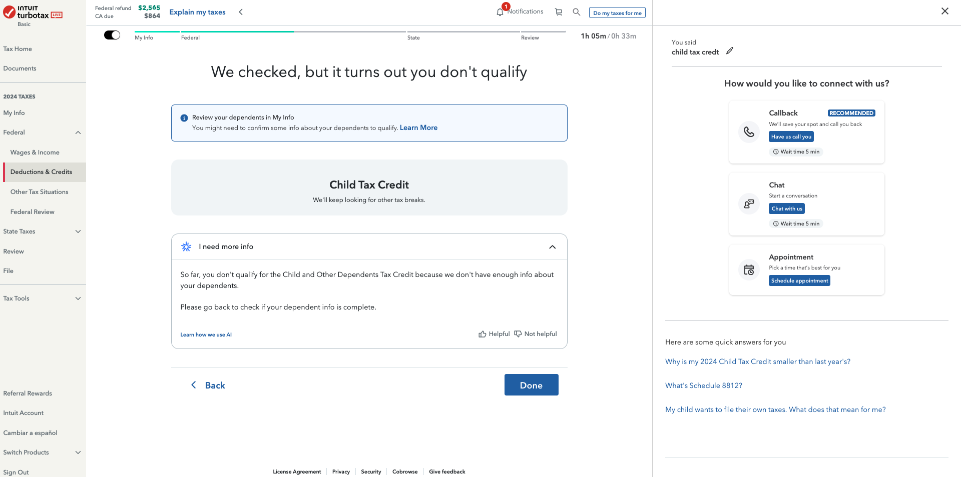 We found the Intuit Assist feature to be surprisingly helpful. Because it’s included in the software at no extra cost, we initially assumed it would be limited to answering very basic product questions or would frequently push us toward an upsell. Instead, we found that it provided accurate and helpful insight into relatively straightforward tax questions.