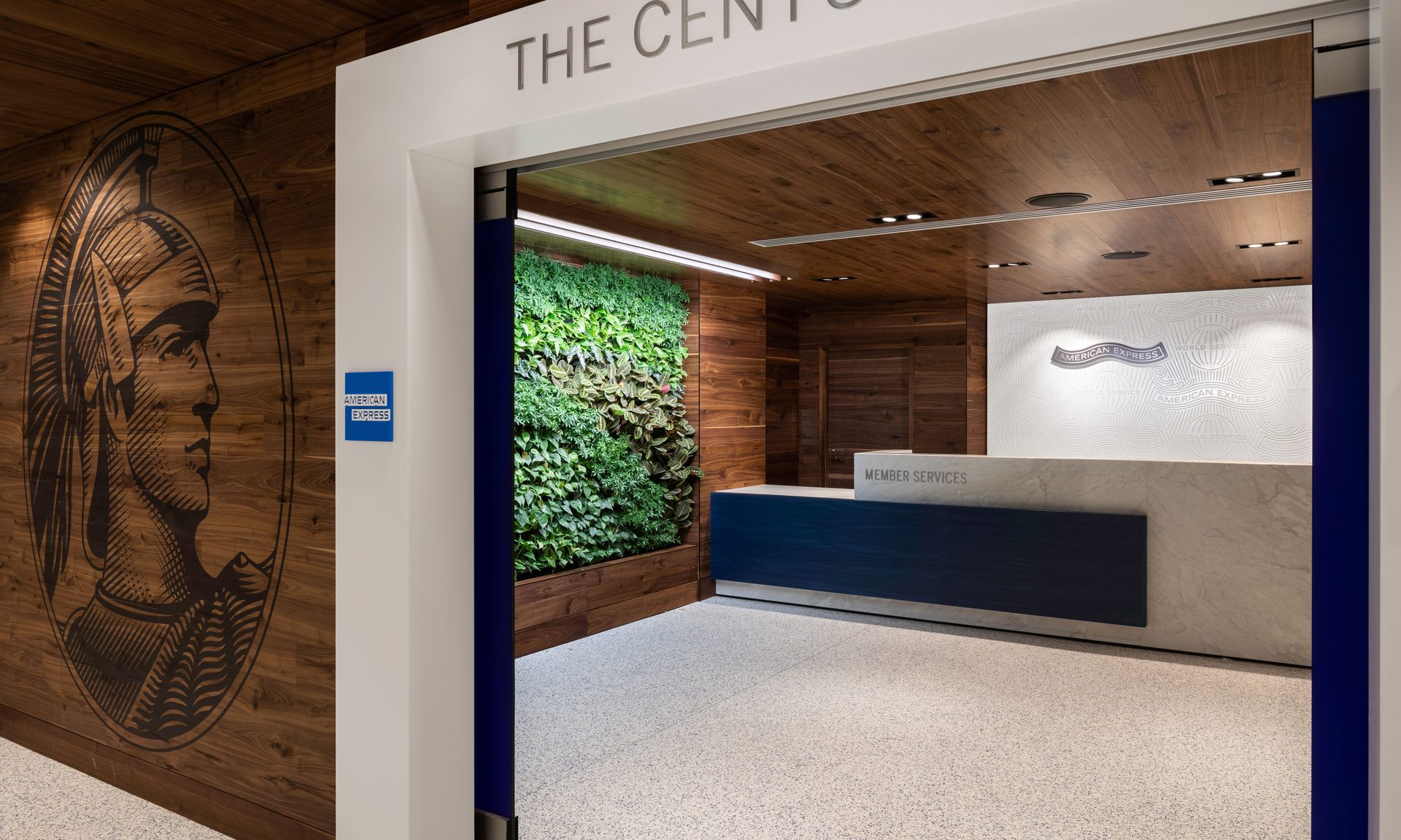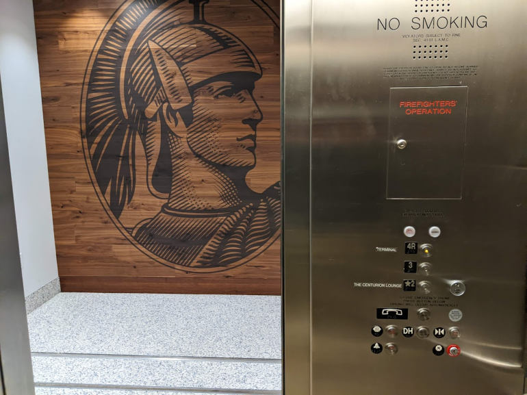 Take the elevator down to the second floor to enter the iconic Centurion Lounge foyer.