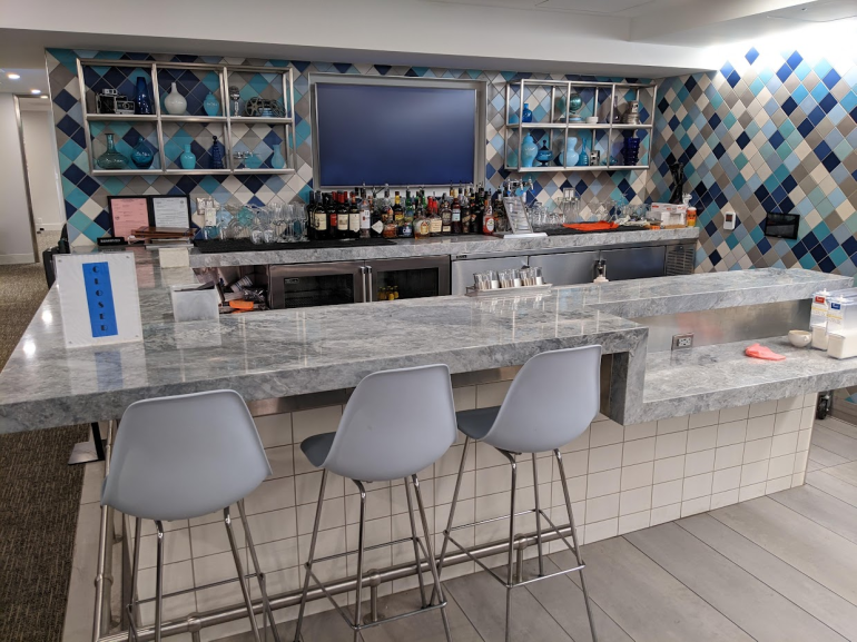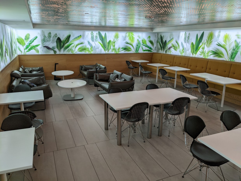 If you turn to the left from the main entrance, you'll find the on-site CLEAR enrollment center, secondary bar, spa, quiet room and several other rooms providing a variety of seating.