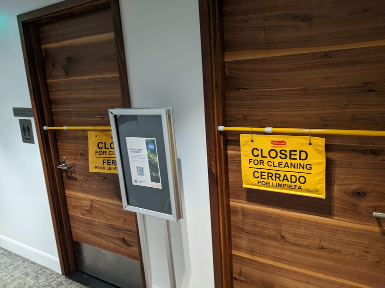 Don't be dissuaded if you see "closed for cleaning" signs on the showers. After waiting for a bit, I inquired at the front desk about when a shower suite would be available. The front desk agent noted that the cleaning crew leaves these cleaning signs in place even when the showers are available. She instructed me to pull the sign down and enter the shower room.
