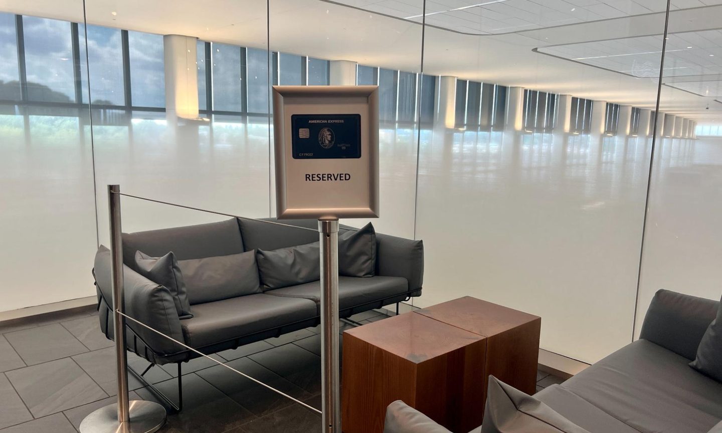 There are also numerous areas reserved for American Express Centurion cardholders. o if you hold one of these exclusive cards, even if the lounge is loud or crowded, you can ask for a private room.