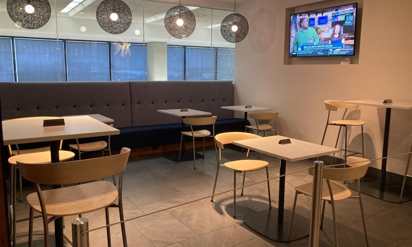 It’s easy to see why. Food quality is likely the best you’ll find anywhere in the airport. The abundance of outlets saves you from hunting for one within the main terminal, and you won’t have to cram your bag into a dirty restroom stall.