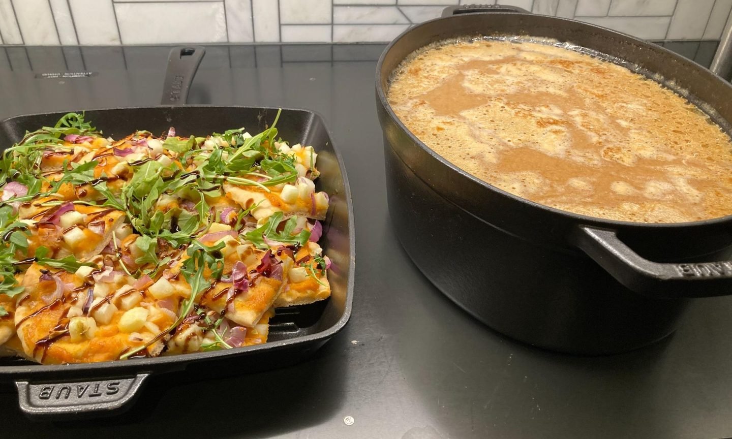 • Butternut squash flatbread with goat cheese, citrus, pepitas and mint.