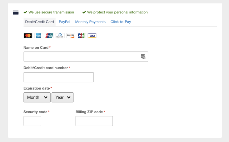 For example, aside from credit cards, Orbitz payment options include debit cards, PayPal, and Affirm — a service that lets you make recurring, partial payments by debit card, checking account or check sent by snail mail.