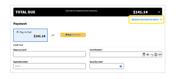 Book a new flight as you usually would, but on the payment page, select “Redeem a Voucher or Credit.” You’ll see a few payment options, such as credit card or voucher. Scroll down to the line that says “Reservation Credit” and input your 6-character confirmation code in the box.