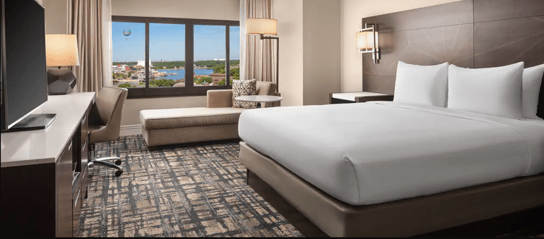 I chose the Hilton Orlando Lake Buena Vista, which is adjacent to Disney’s shopping center, meaning tons of dining and entertainment within walking distance.