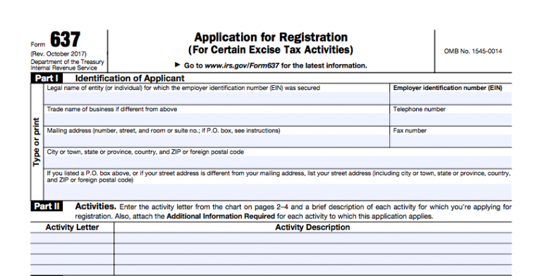 To register with the IRS you’ll need to fill out Form 637 and fax or mail a hard copy of it to the IRS. Once that application is approved you’ll get a registration letter. You can check your registration status online with the IRS. Below is an example of part of the Form 637.