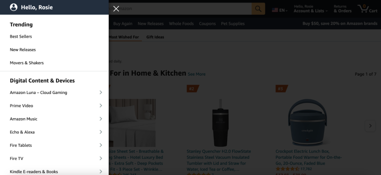 - Movers and Shakers: These are products quickly gaining popularity in their given categories. Located right below “New Releases” in the navigation menu.