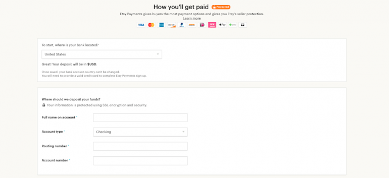You’ll need a credit or debit card on file so that Etsy can charge you for selling fees. This cannot be a non-reloadable prepaid debit card.