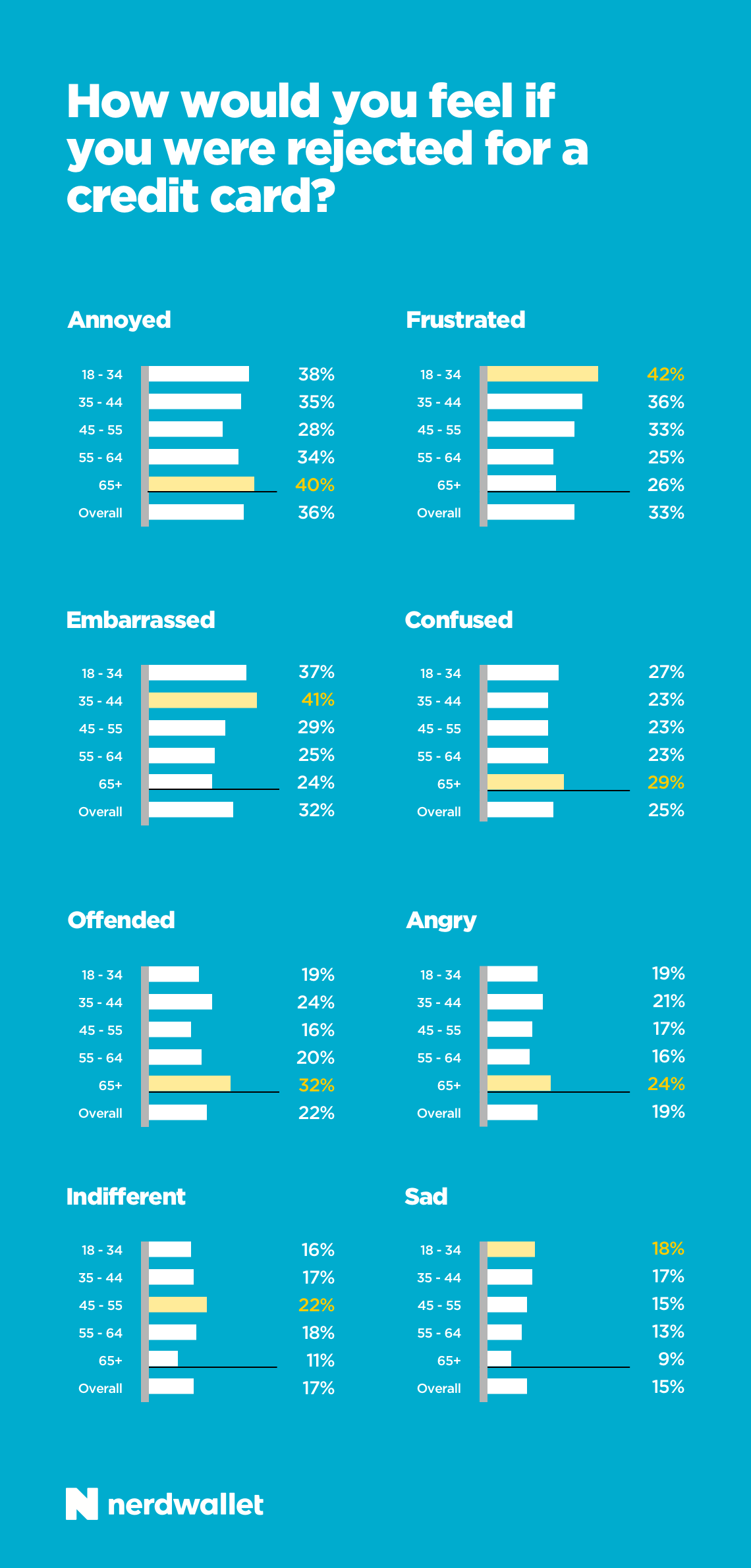 NerdWallet commissioned a survey of more than 2,000 U.S. adults in September 2016, conducted online by Harris Poll. We asked how they’d feel and what they’d do if they were rejected for a credit card. Here’s what we learned: