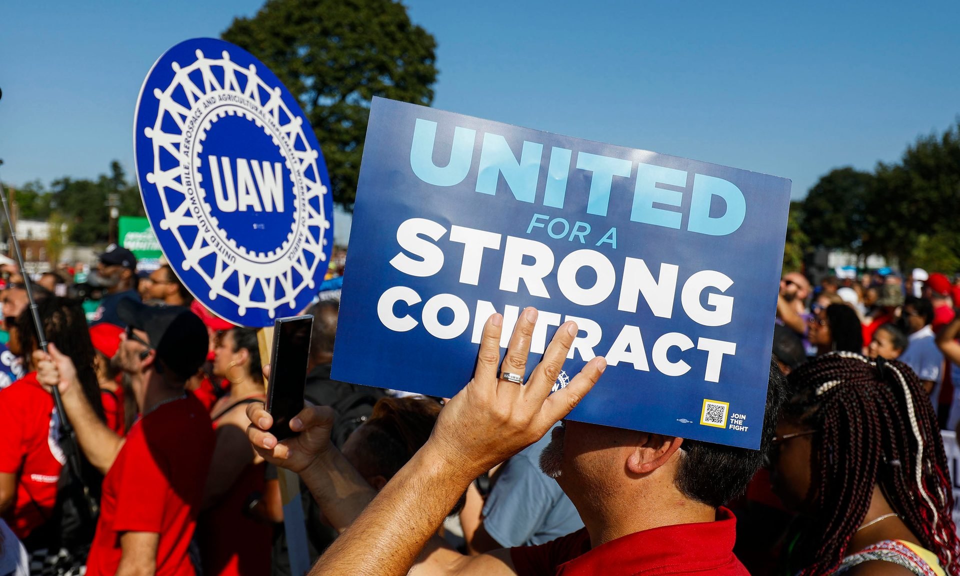 The UAW represents nearly 150,000 workers. The union joins other major strikes sweeping the U.S., including Hollywood actors with SAG-AFTRA and film and TV writers with the WGA.