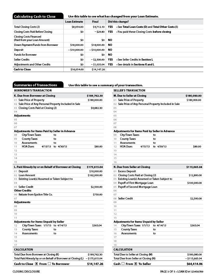 Page 3 of a sample Closing Disclosure on the Consumer Financial Protection Bureau's website