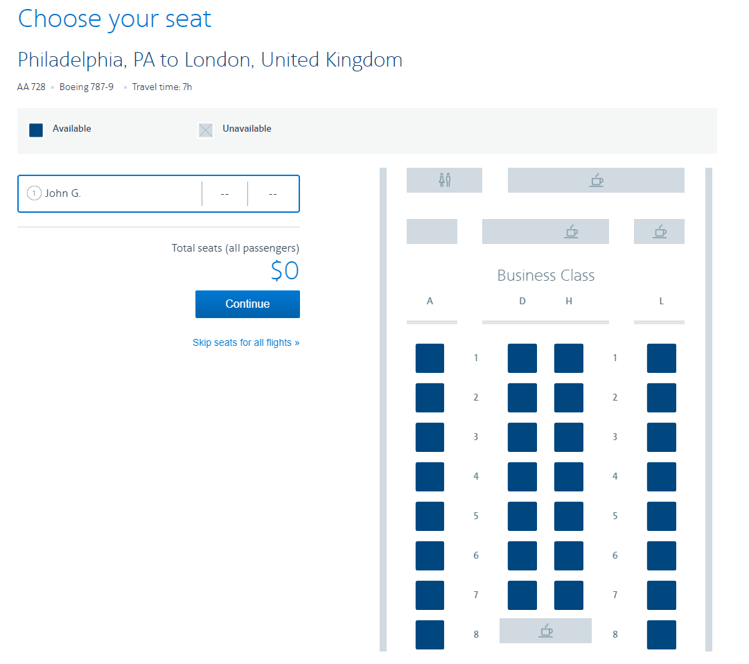 However, as you can see above, American has two different seating arrangements for the Boeing 777-200ER, 787-8 and 787-9. In this case, you'll need to open the airline's website — or your flight booking platform — in conjunction with AeroLOPA to figure out the right option.