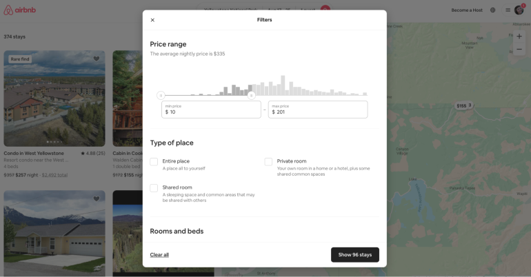 Cleaning fees can be hard to parse and make filtering listings by price complicated. You might have a nightly lodging budget of $200, so you set your filter to display homes with a maximum price of $200. But in doing so, you might still end up paying more, as you might find a delightful $100-per-night home with a $150 cleaning fee. Likewise, you might overlook a $210 per night home with a $0 cleaning fee.