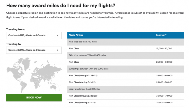 If you travel during off-peak times, you may be able to score a better deal on award flights. Alaska mainly bases its award chart on distance traveled, but availability and peak seasons play a part in award pricing, too.