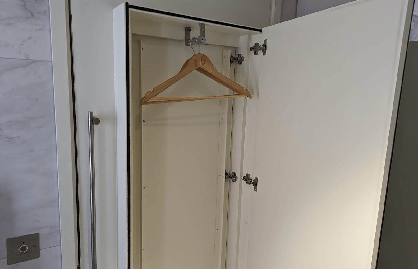 While you shower and freshen up, the lounge staff will iron your clothes and hang them back up in the closet for you to retrieve when you're done.