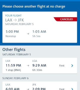 Start by checking the American app. By tapping the flight cancellation button, you may be able to quickly snag a seat on another flight without having to make a call or speak with an agent.