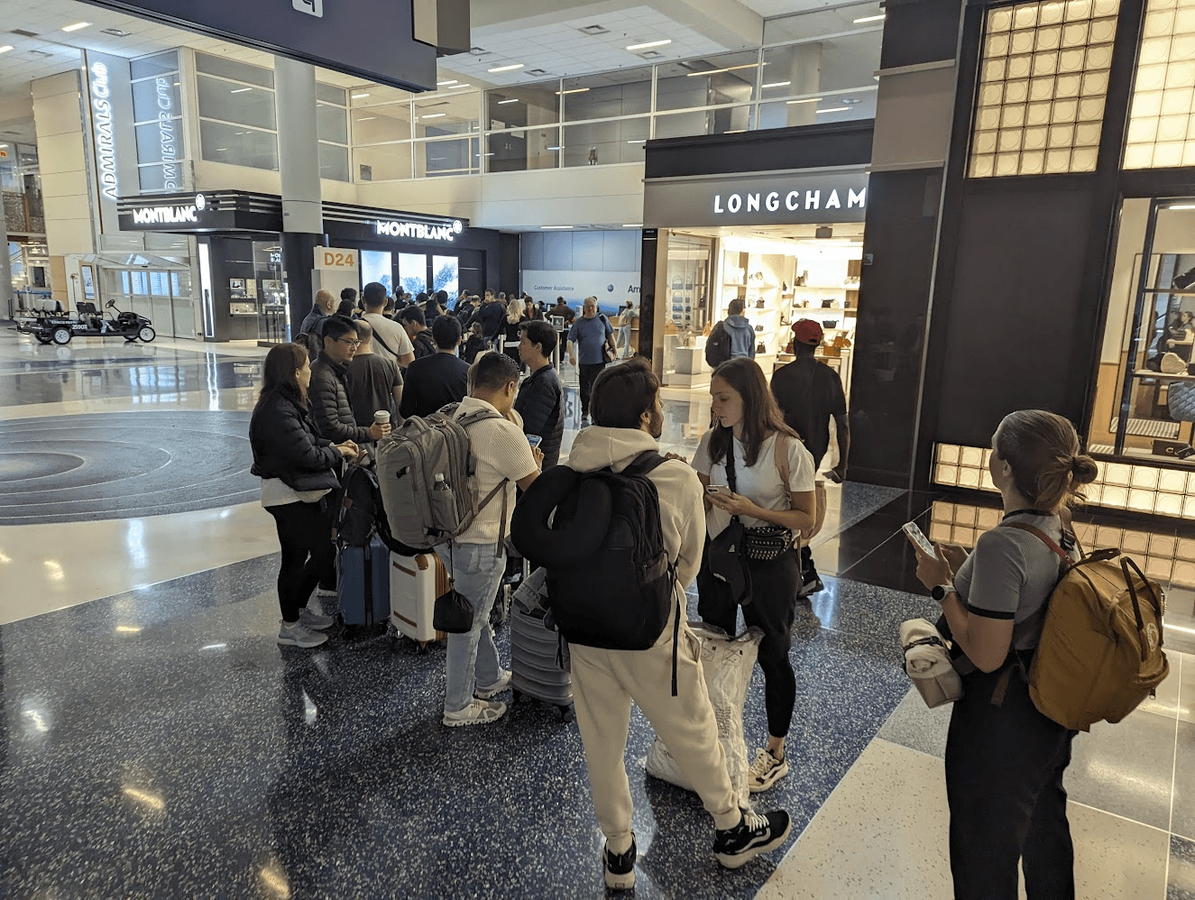 If you're at the airport when the cancellation happens, we recommend getting in line to speak with an airport agent while you wait for a phone agent to pick up. Travelers with Admirals Club access may find shorter lines inside the club rather than at a general help desk or the gate counter.