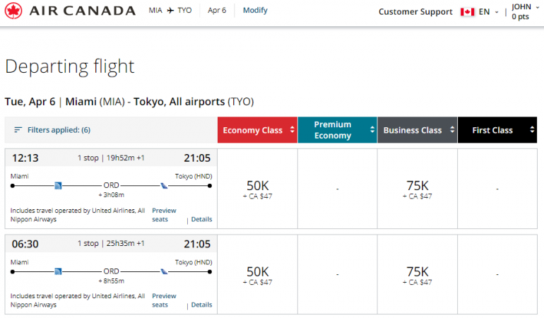 One of the major advantages of using the Aeroplan program is that you can book connecting itineraries without any extra cost. As long as the total distance of your flights is within the established zone range, you’ll get this pricing. That makes Aeroplan the go-to program for those on the East Coast who need to book a connecting itinerary. You can maximize this by originating as far southeast as Miami.
