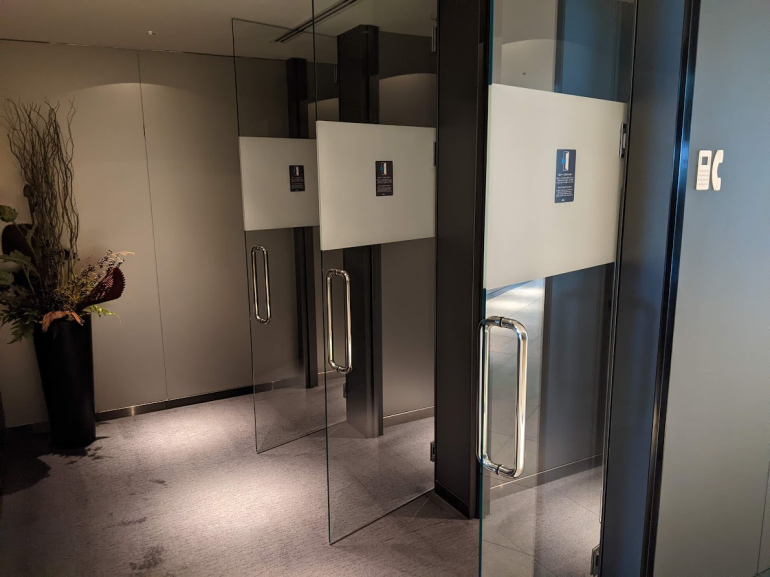My biggest airport lounge luxury is getting to take a shower in the airport before my flight. The good news for fellow shower fans is that there are four individual shower suites available in the ANA first class lounge. Lounge visitors can register for a shower room using a kiosk in the business center. At the time of my visit, I was able to get a shower room immediately.