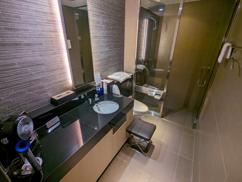 Shower room amenities included a dental kit, comb, hairbrush, shower cap, hair dryer, Kose-branded amenities, a full towel set (body towel, hand towel, wash cloth and floor towel) and even a shoehorn.
