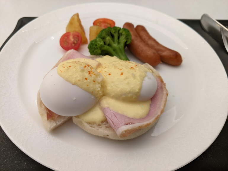 I ordered the eggs benedict as a check on how the lounge would handle a Western dish, and I was pleasantly surprised. The egg was perfectly poached and the English muffin was nicely toasted.