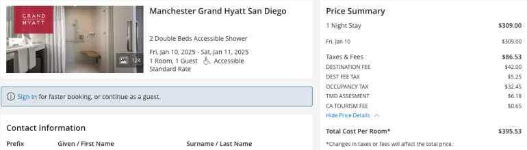 Here’s the same stay when booked directly through Hyatt’s website.