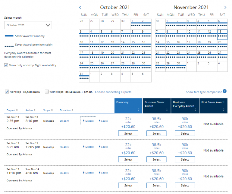 For example, you can pay 38,500 United MileagePlus miles each way for Avianca business class. Plus, availability is generally wide open: