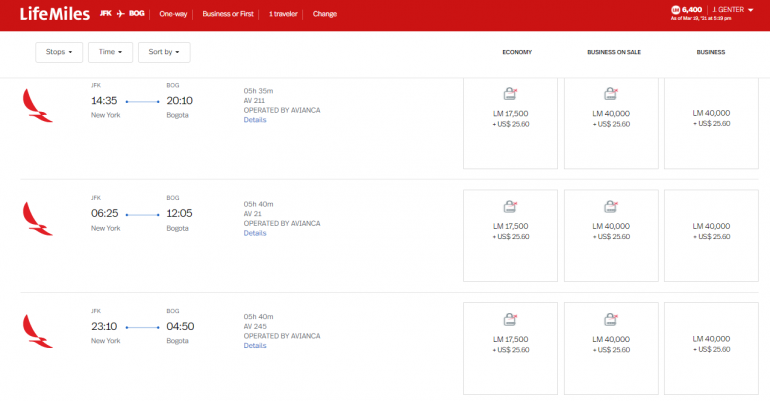 Meanwhile, New York-JFK to Bogota might cost 40,000 LifeMiles one-way.