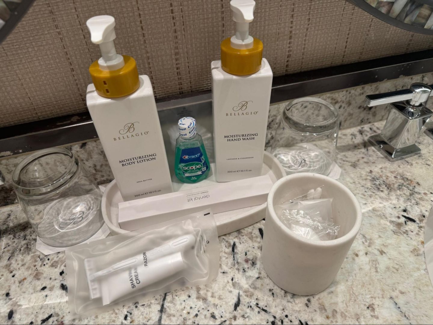 Whereas many hotels have cut back on free, in-room toiletries (or at least require you to call the front desk to request them), Bellagio bathrooms are stocked with toiletries including a toothbrush, mouthwash and shaving kit.