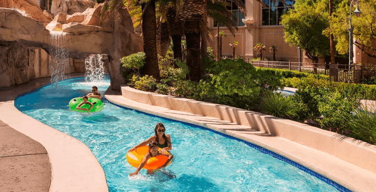 That said, the MGM Grand’s pool complex gives it a shot at least at runner-up status. Its pool complex is a massive 6.5 acres and includes a lazy river.