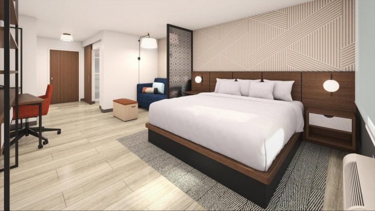Around 50 Cambria Hotels are open, with almost 100 more in the development pipeline. Most have lobbies with ample seating and workspace, plus a restaurant and bar serving craft beer and cocktails. Among the in-room amenities at many hotels are Bluetooth-compatible bathroom mirrors to help travelers have a more personalized morning routine. The hotels also have a fitness center, grab-and-go marketplace and flexible conference space.