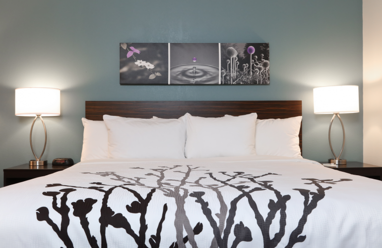 Designed for extended stays, Sleep Inn's rooms offer amenities like a refrigerator, microwave, work desk and media panel to sync personal devices with the TV.