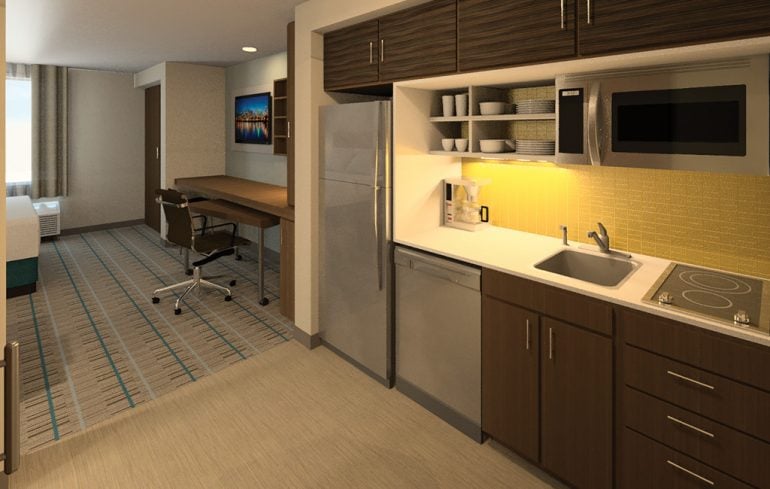This extended stay brand offers studio suites at more than 75 open or under-development hotels. Each studio has a kitchen, living area, laundry facilities and dining room, in addition to the sleeping space. Weekly housekeeping service and on-site washers and dryers round out the conveniences.