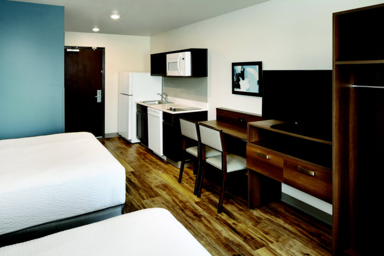 With more than 400 properties open or under development, the fast-growing WoodSpring Suites brand serves guests like business travelers, medical professionals and homeowners who need a place to stay while work is being done on their homes. Guests will find shared amenities like laundry facilities and fitness centers. Housekeeping services are available once every two weeks, although guests can pay for more frequent visits. Accommodations have living and sleeping areas plus kitchenettes, along with simple, clean and efficient design.