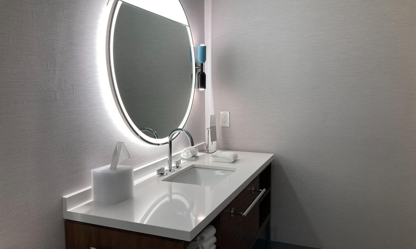 As with all Courtyard by Marriott properties (and other Marriott brands like SpringHill Suites, Residence Inn and Fairfield by Marriott), there are no tiny, single-use toiletry bottles of shampoo, conditioner or bath gel. Instead, rooms feature large, pump-top bottles that are more environmentally friendly.