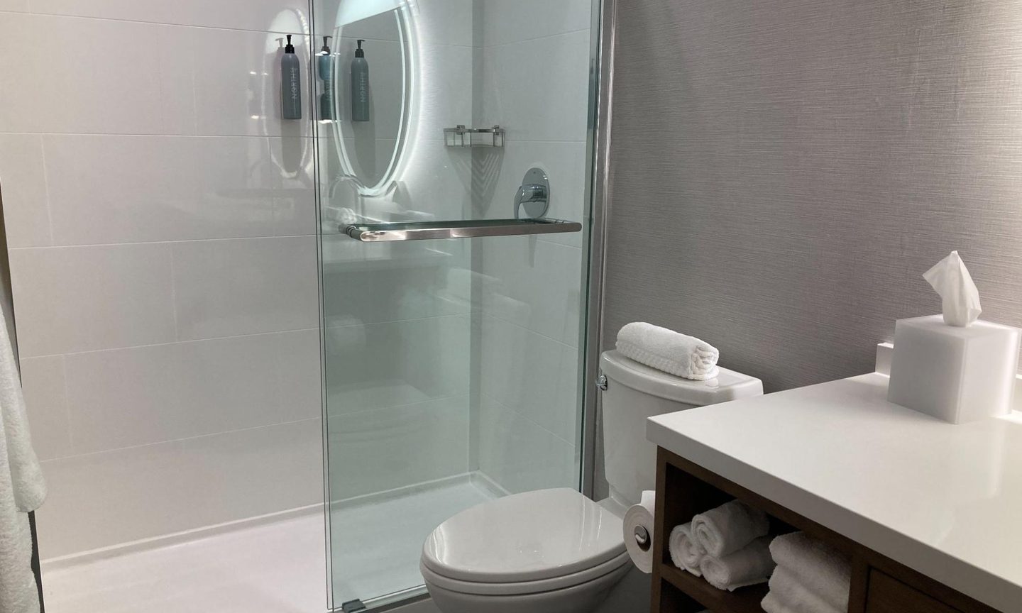 Recent renovations are especially evident in the bathrooms, which are sleek and modern, offering a lighted makeup mirror.