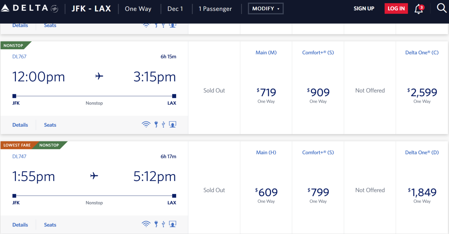 Delta has several different cabins and levels of service, as well as fare classes that correspond to each one.