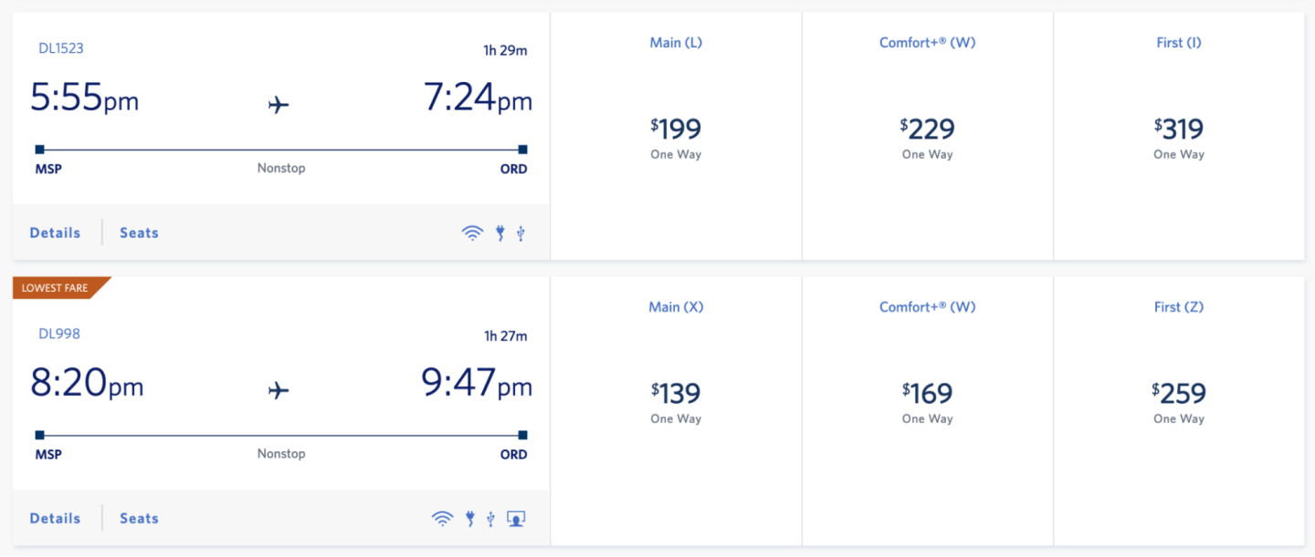 Let’s say you want to book a trip from Minneapolis to Chicago. There are two flights available, one that departs at 5:55 p.m. for $199 and one that departs at 8:20 p.m., which costs $139. You want to take the earlier flight, but you’re flexible and could fly on the later flight, if necessary.