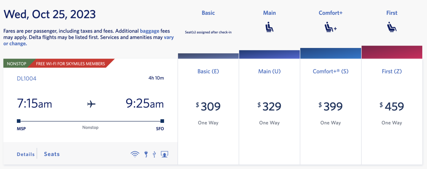 If you're booking an award ticket with your SkyMiles, you’ll see main cabin fares in your search results there too.