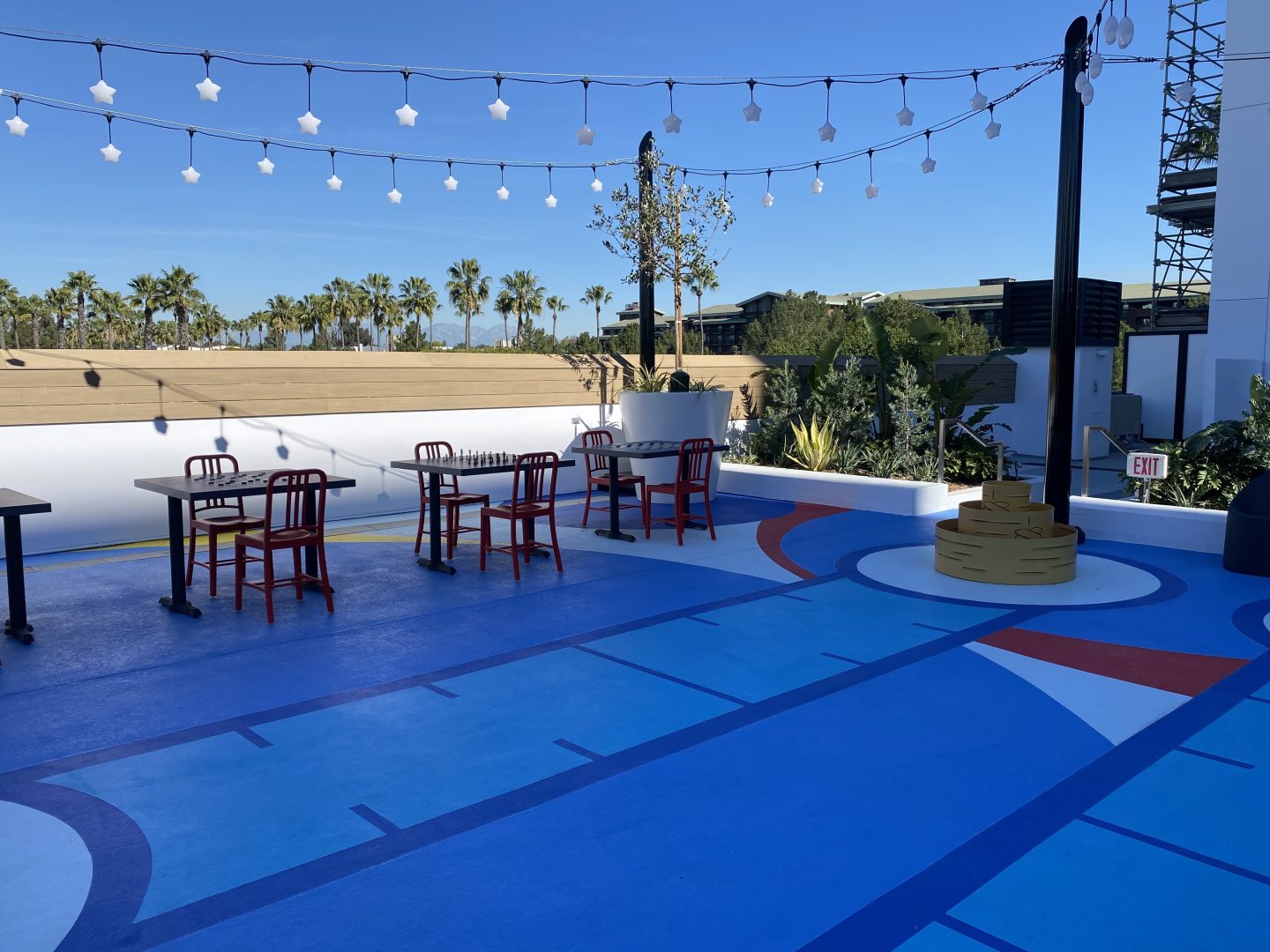 The Pixar Shorts Court is another place to play outside on the third-floor rooftop. It has some games painted onto the ground that are based on some beloved Pixar short films, like a “Bao” toss and “La Luna” shuffleboard, but kids will probably use their own imagination and make up their own games for this space.
