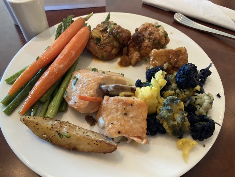 Emirates also caters to people with dietary restrictions. For example, passengers who don't eat meat and dairy can opt for Emirates' three-course vegan meal — or just pick vegan snacks à la carte.