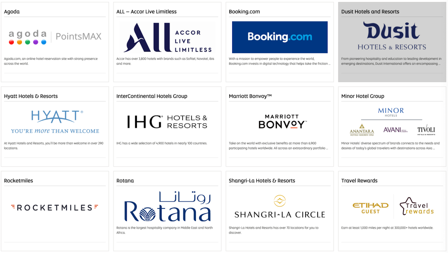 Etihad is also partnered with some hotels and online travel agencies (OTAs), allowing you to earn Etihad miles on your bookings. Current partners include Hyatt, IHG, Marriott, Booking.com and more.