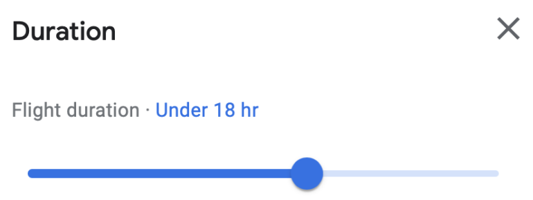 Combined with the ability to pick your layovers, limiting the duration of your flight allows you to pick the fastest routes. This is especially useful when Google presents options that can take 30 hours or more.