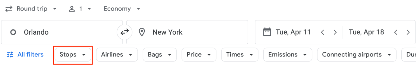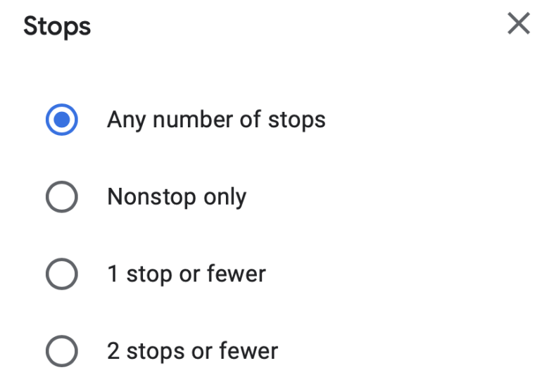 The stops filter on Google Flights allows you to set how many layovers you’re willing to tolerate, whether that’s one stop, two stops or no stops at all.