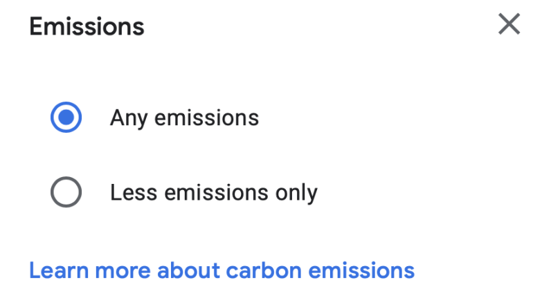 It’s no secret that air travel produces some serious carbon emissions. If that's a concern, Google has a filter to show you which flights have a lower impact on the environment.