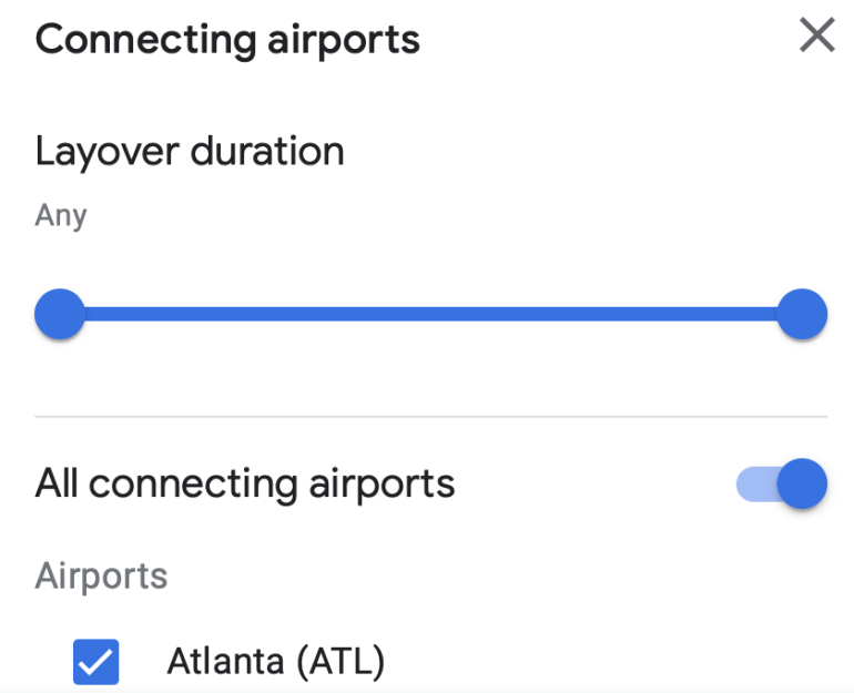 If you have to stop over, the "connecting airports" filter allows you to select where your layover will be. Have you been wanting to check out the SkyDeck at the Delta Sky Club in New York-JFK? Well, you can filter out other airports and choose how long you’d like your layover to be with this option.