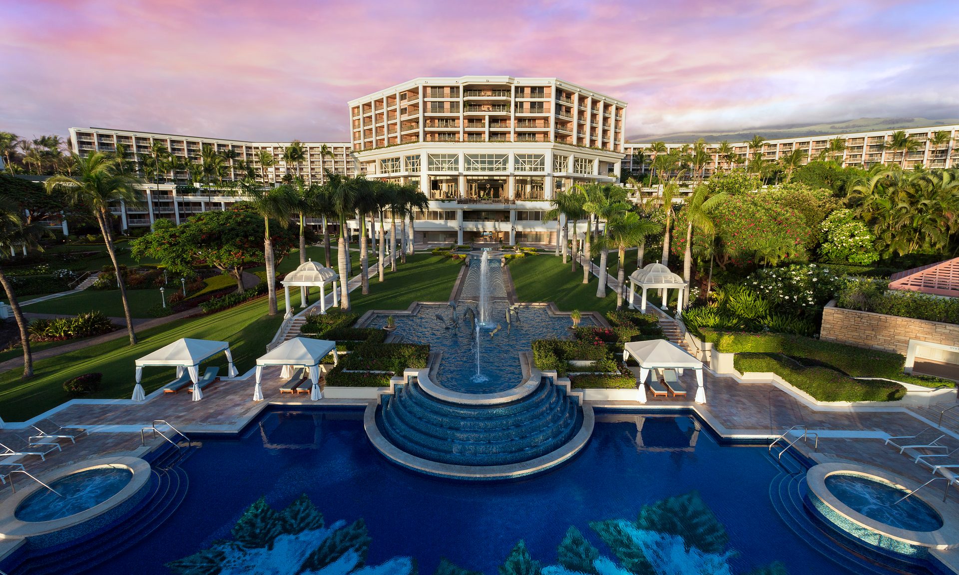 The Grand Wailea is a massive property with 776 guest rooms, 40 acres of tropical gardens, a 50,000 square-foot spa, a wedding chapel and more.